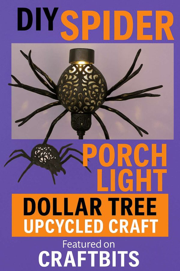 If you want to give your porch a spooky makeover without spending a fortune, this DIY Halloween Spider Porch Light is a brilliant upcycled idea. Made from simple Dollar Tree supplies, it’s creepy, creative, and budget-friendly—everything we love in a Halloween craft.