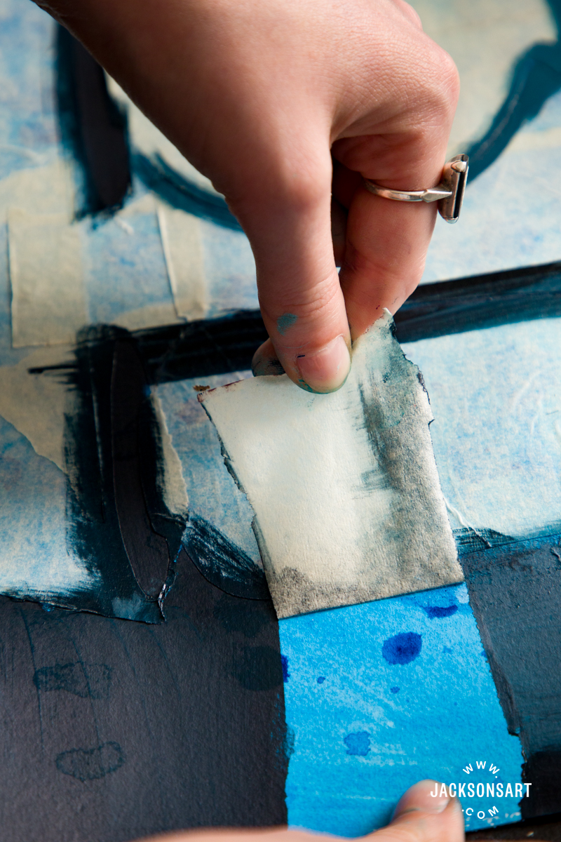To finish, I left the paint to partially dry down, before peeling it off carefully to reveal the ground below.